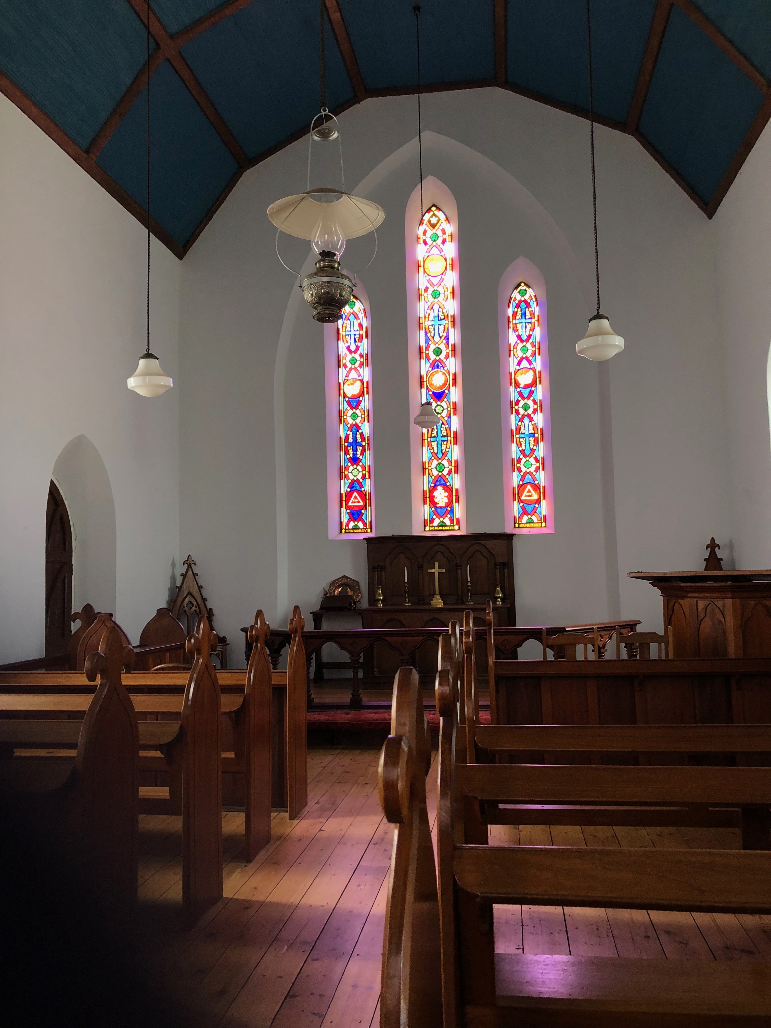 Like so many isolated stations, when labour and supplies had to be transported over long distances over rough tracks, by horse and buggy, Bungaree needed to be as self sufficient as possible. Basic staples to meet their needs for many months were ordered in bulk and stored in buildings such as the Store House we first saw. Housing for the large numbers of workers required to keep the Station running had to be provided, and so was a place of worship.