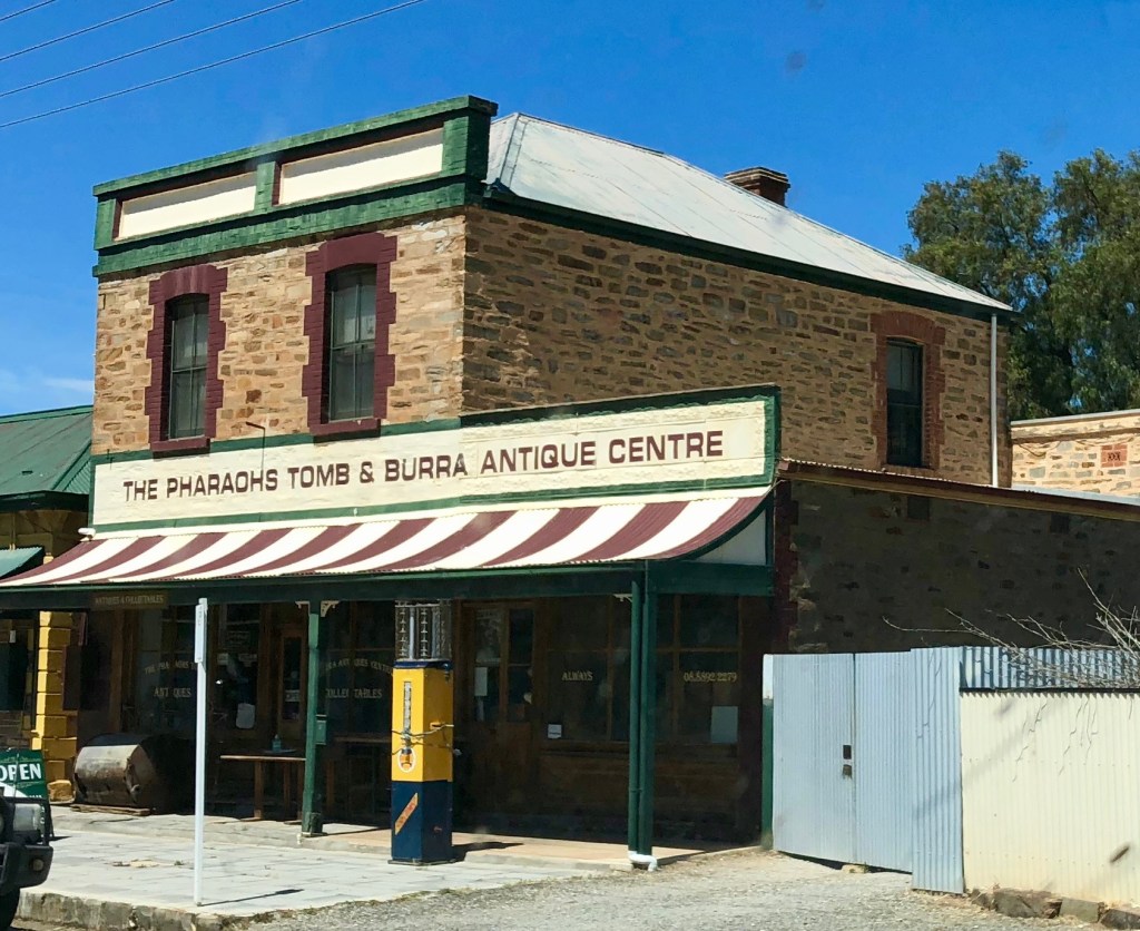 We enjoyed our brief tasting, mainly of the reds, then continued on to Burra. Norm found another road less travelled, through beautiful agricultural land. Several of the fields are now being harvested, changing the green and yellow patchwork paddock quilt to green, yellow and golden brown.