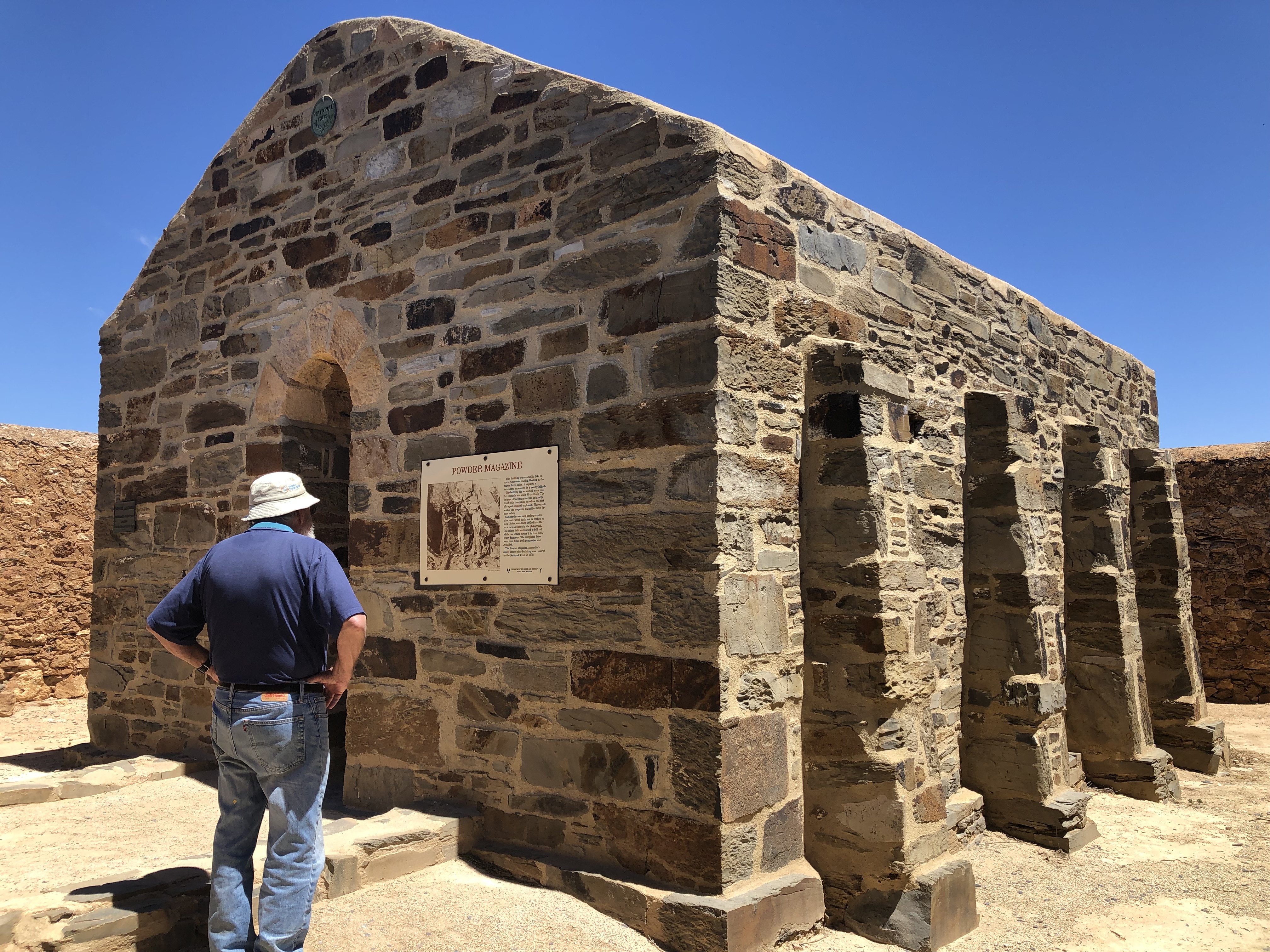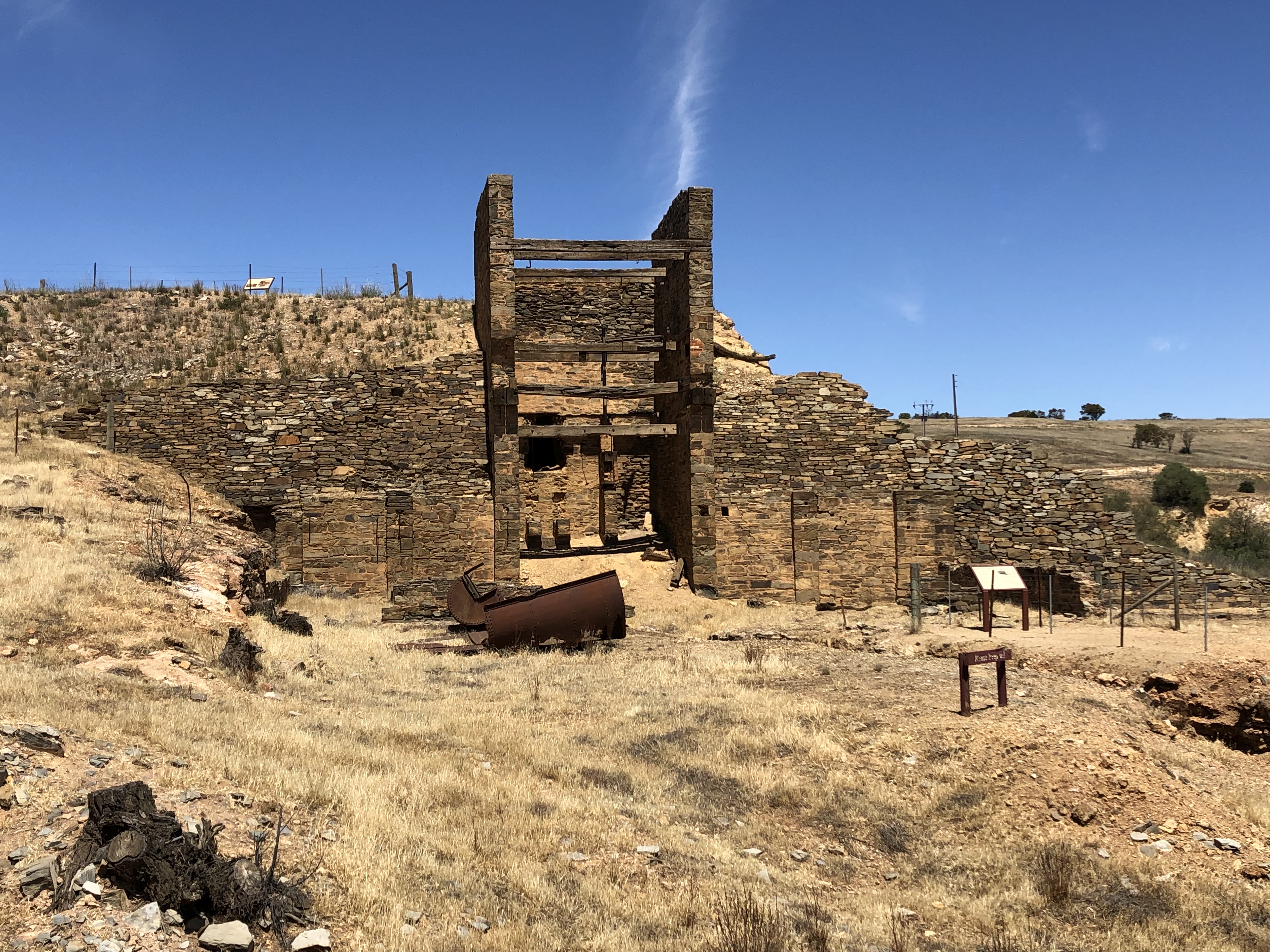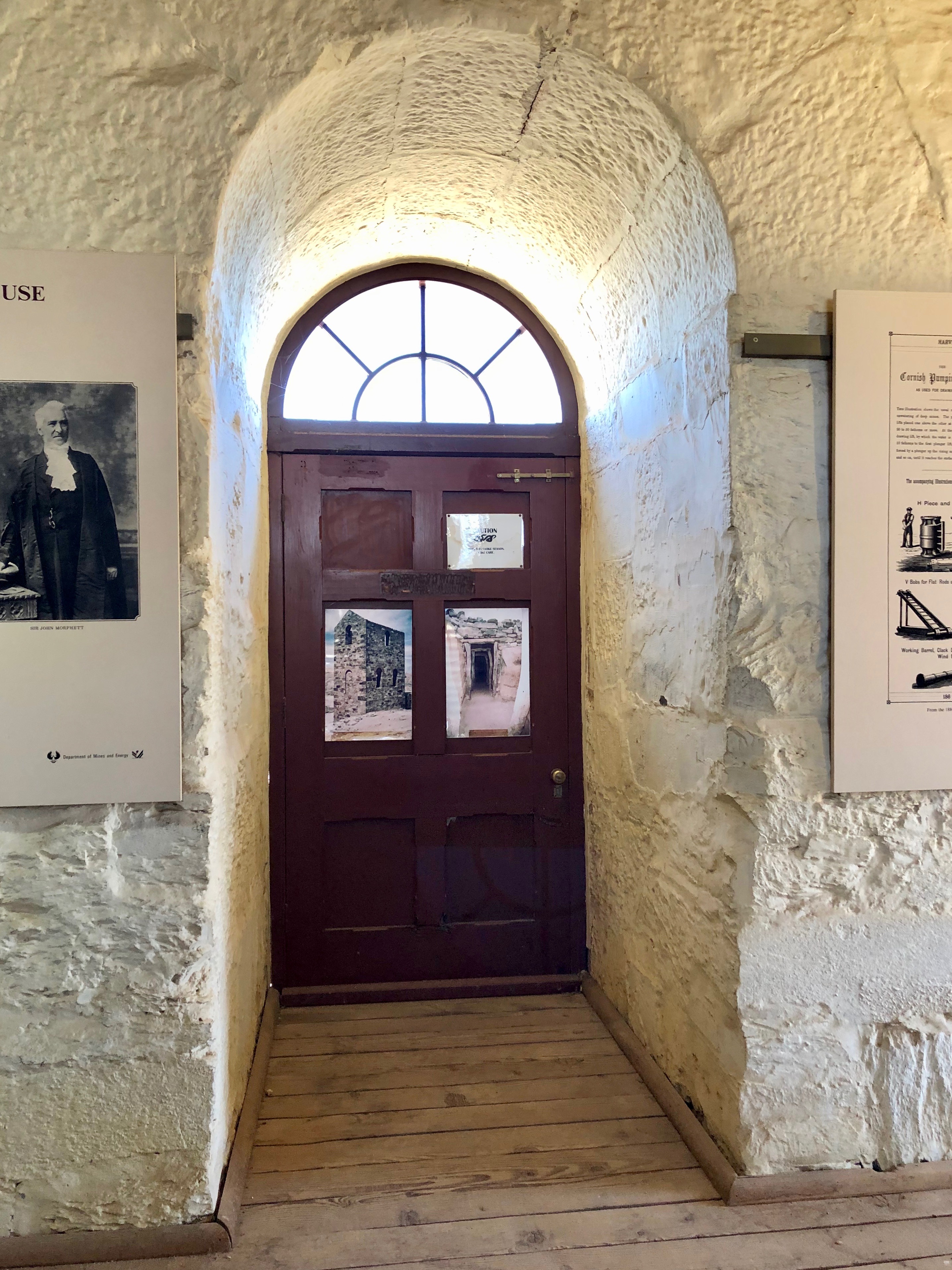 the old Powder Magazine, built in 1847, which is one of the oldest remaining mine buildings in Australia. It was used to store gunpowder used in blasting at the mine. As well as the arched roof, thick stone walls and an extra protective stone wall around the interior was also lined with sheepskin for added safety.