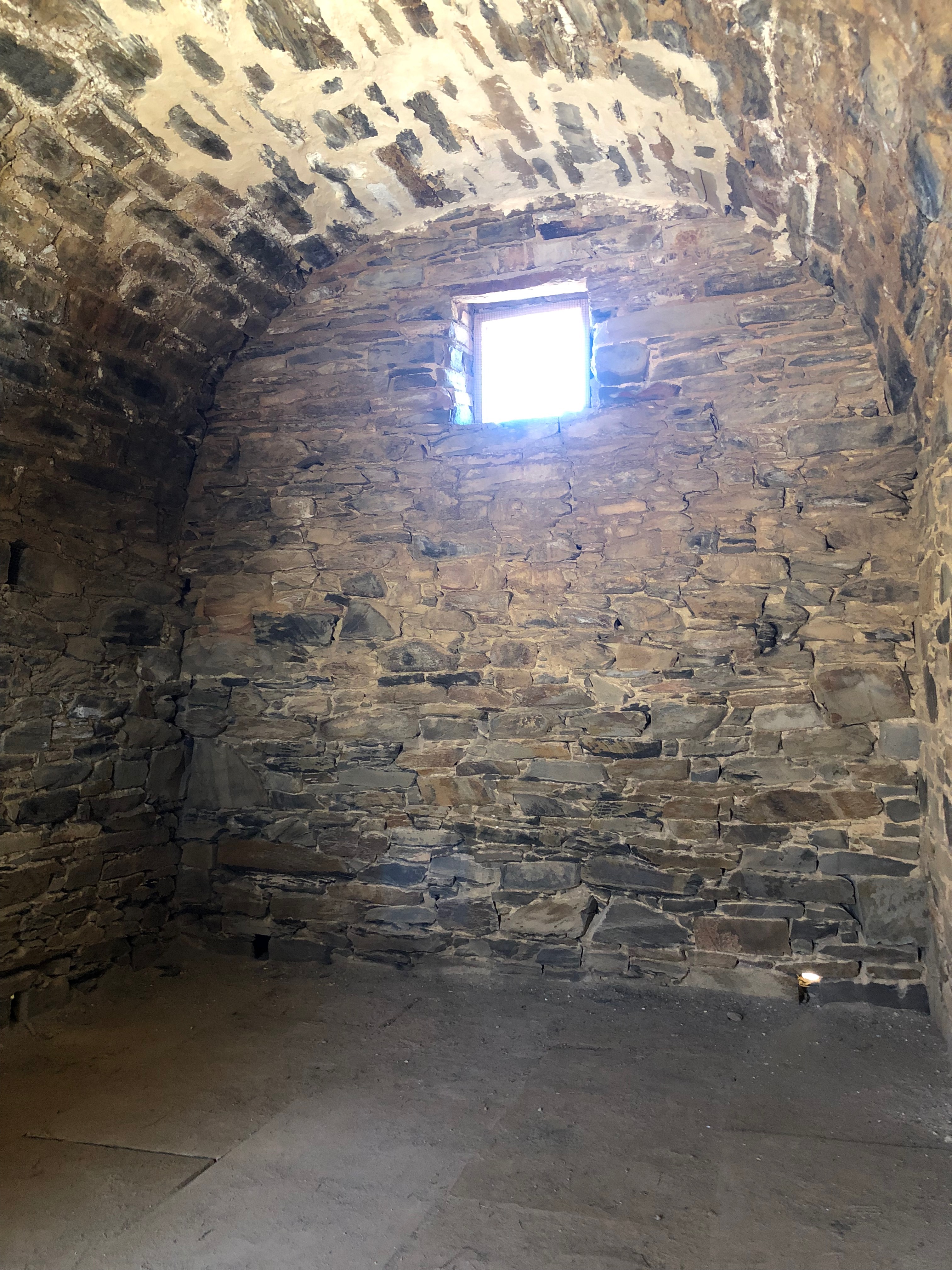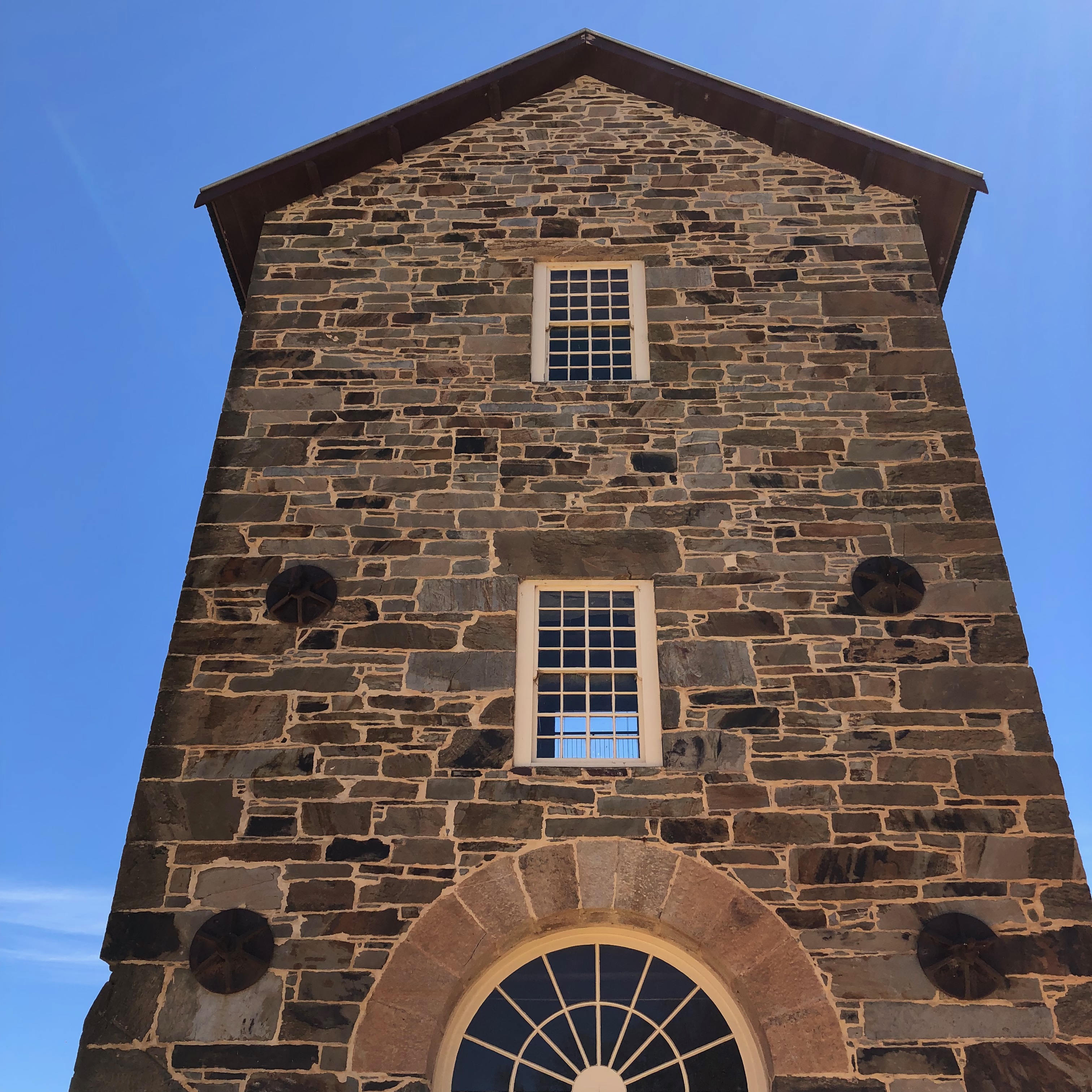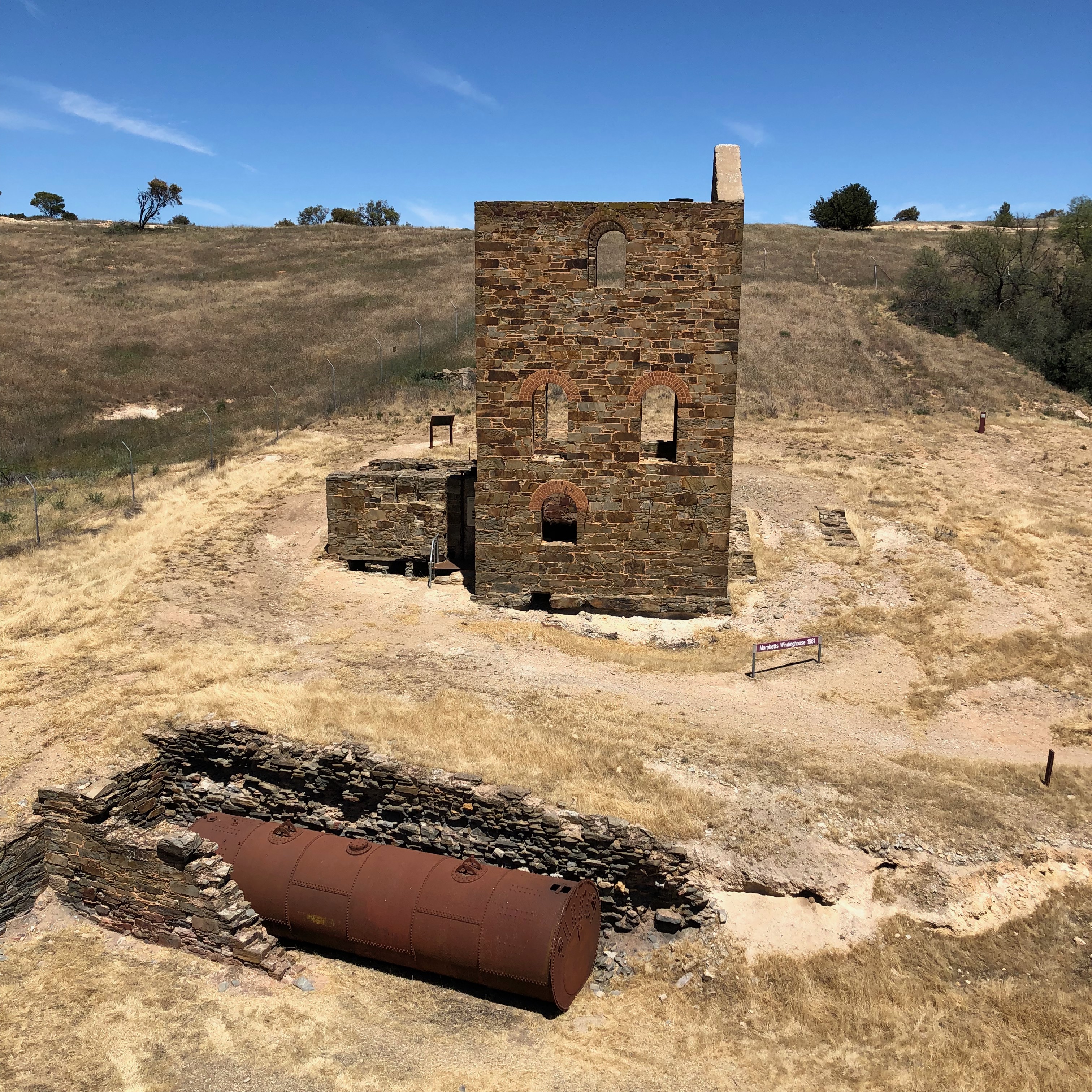 the old Powder Magazine, built in 1847, which is one of the oldest remaining mine buildings in Australia. It was used to store gunpowder used in blasting at the mine. As well as the arched roof, thick stone walls and an extra protective stone wall around the interior was also lined with sheepskin for added safety.
