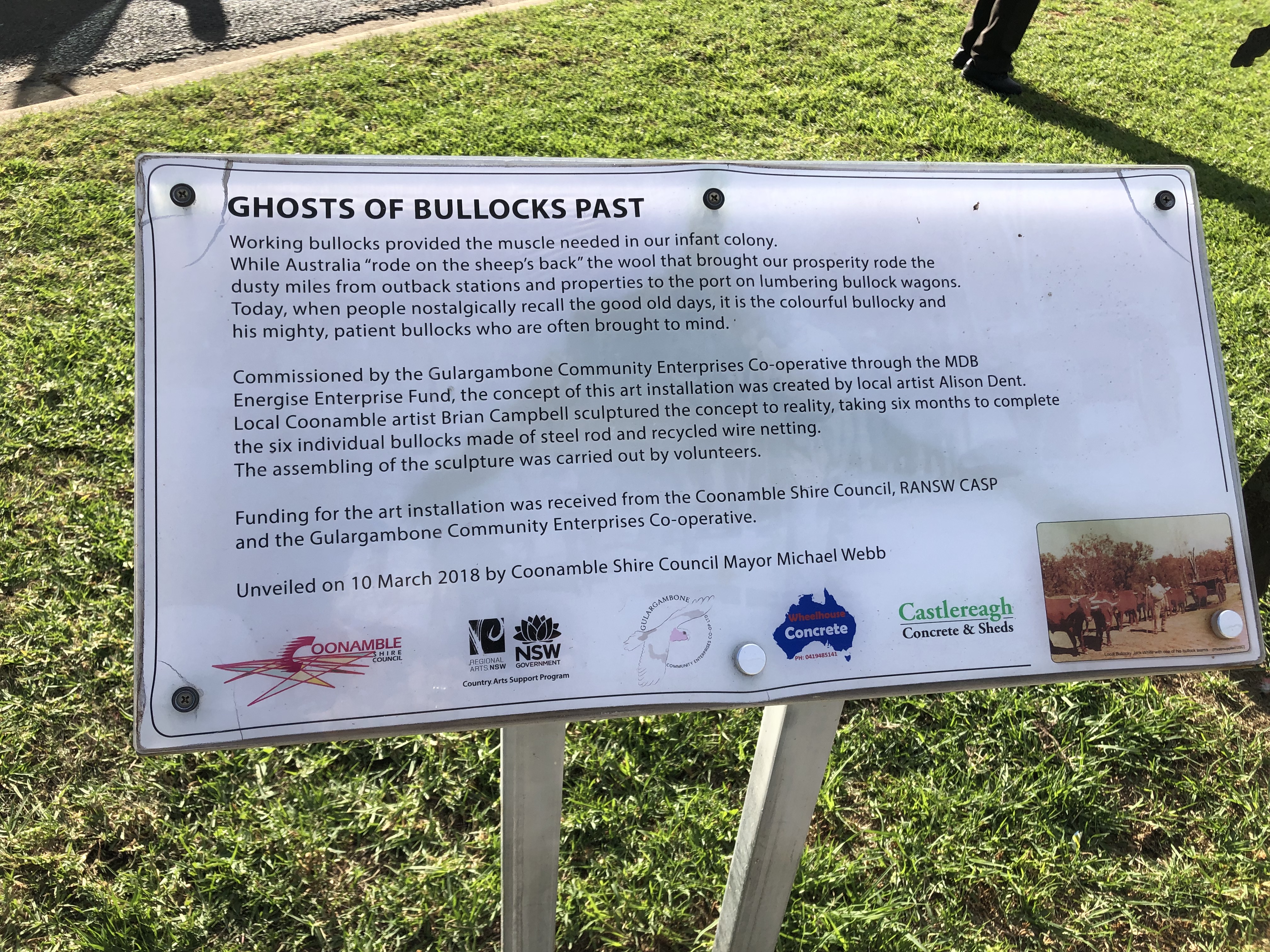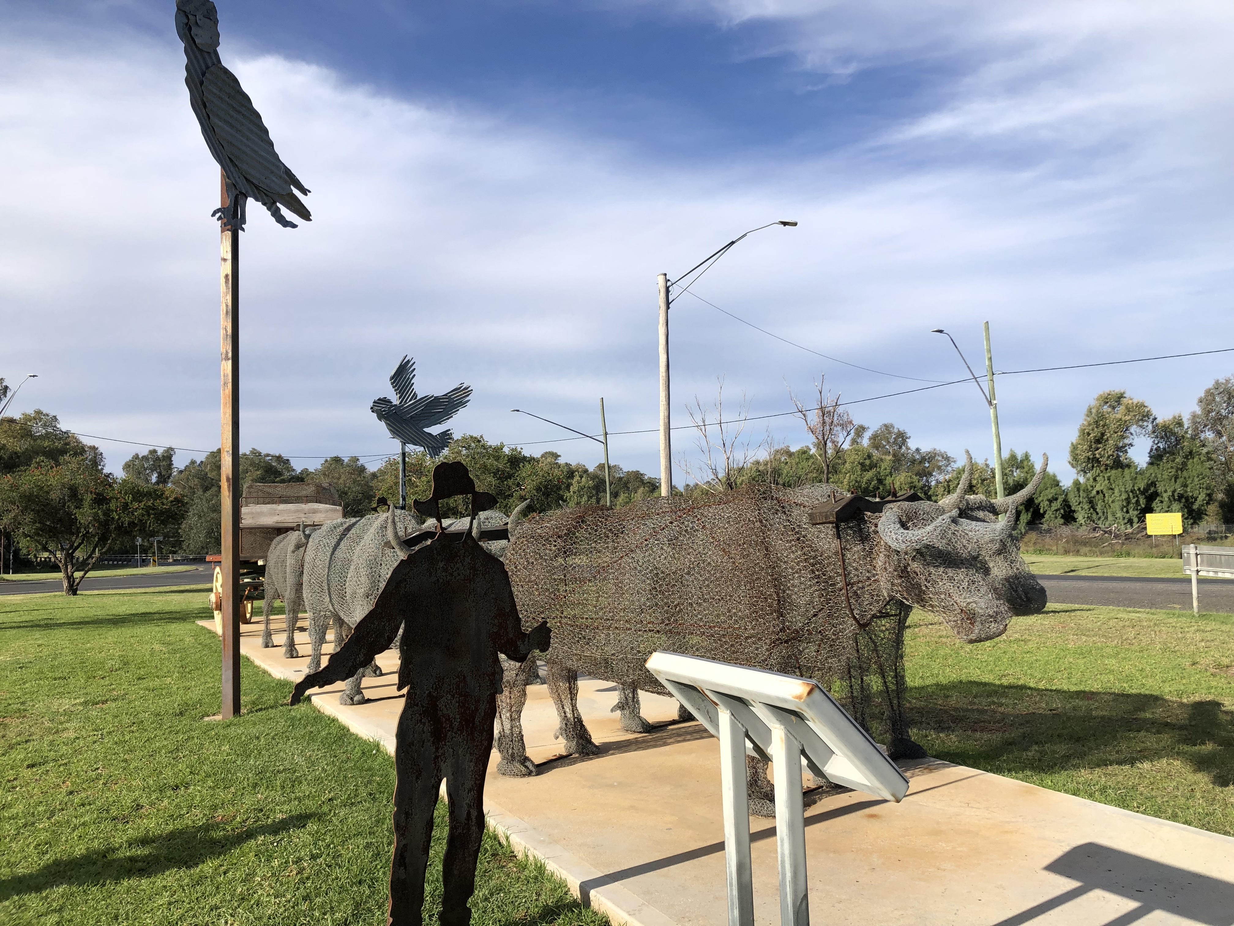 There are several eye catching corrugated iron sculptures of galahs beside the highway leading into the town, with plenty more around the town. My favourite sculpture was the spectacular “Ghost of Bullocks Past”: