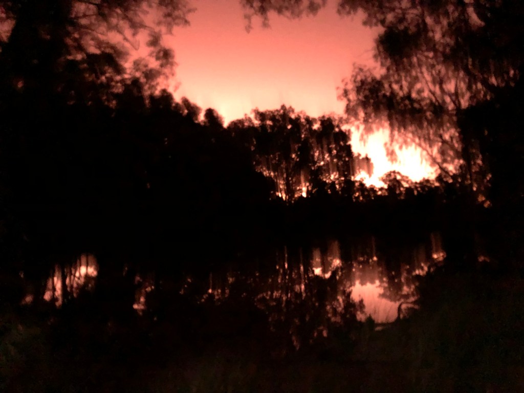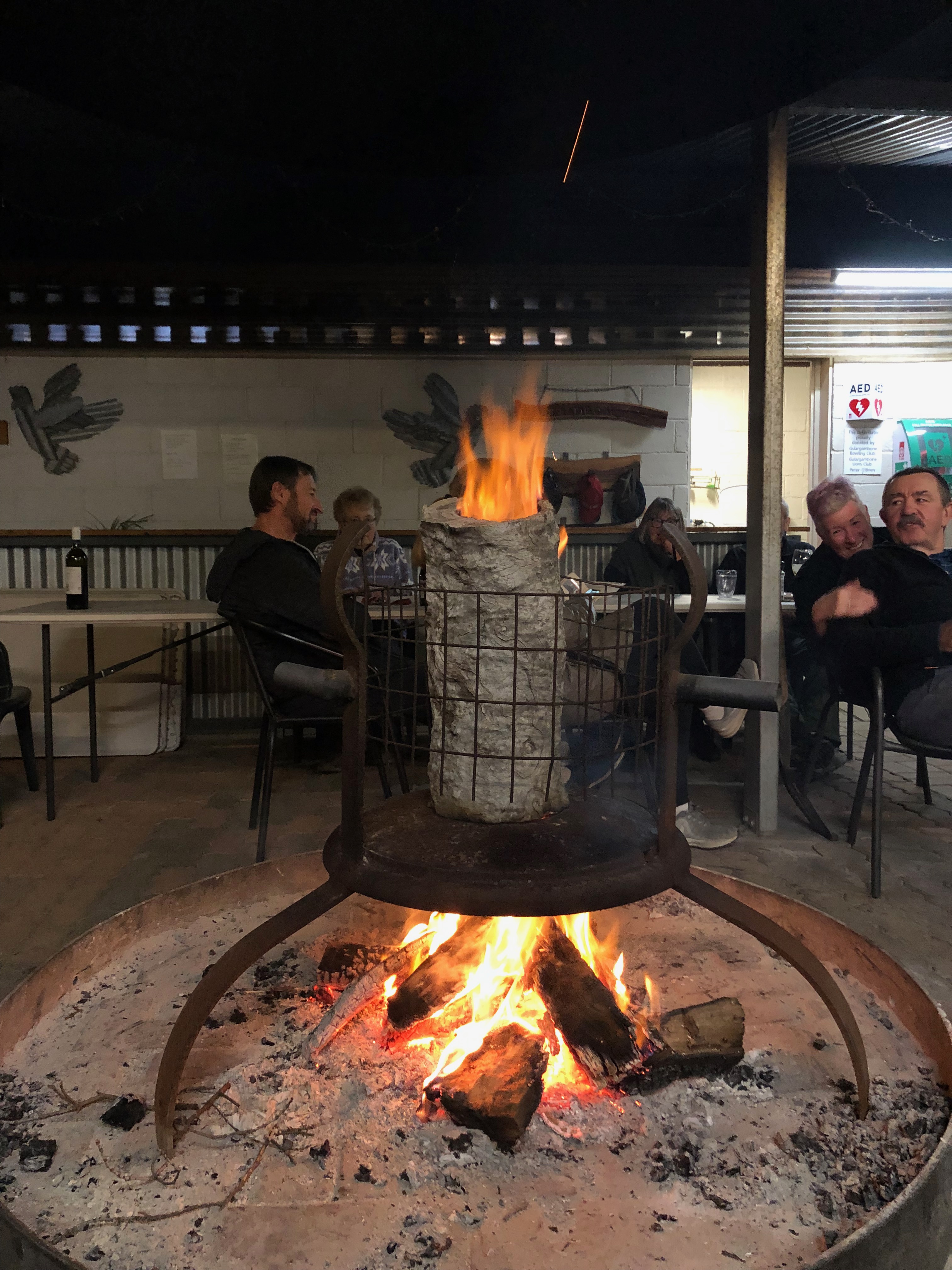 Following our delicious feast a chimney log was added to the fire along with some mysterious ‘stuff’ that sent up colourful flames of green, blue and purple. I enjoyed chatting with our neighbours, Jason and Sharna, on a trip from Bendigo up to Lightning Ridge and beyond.