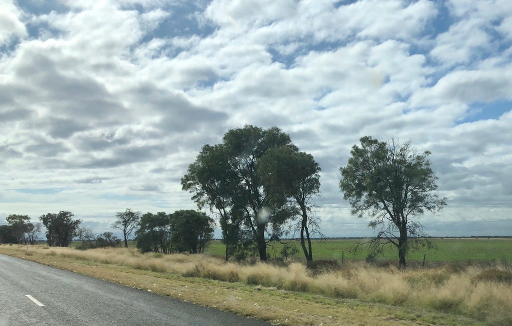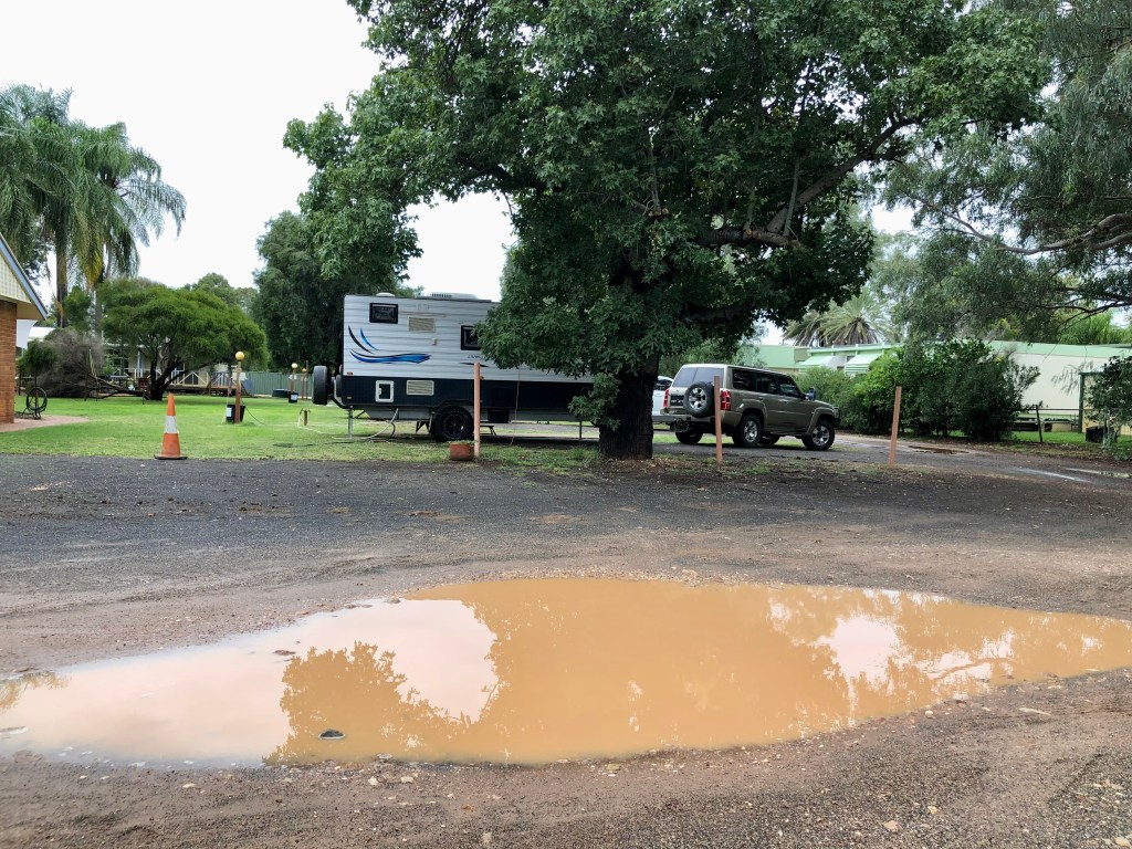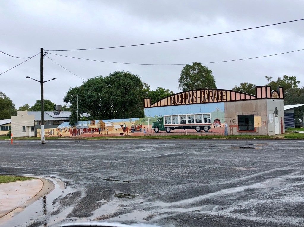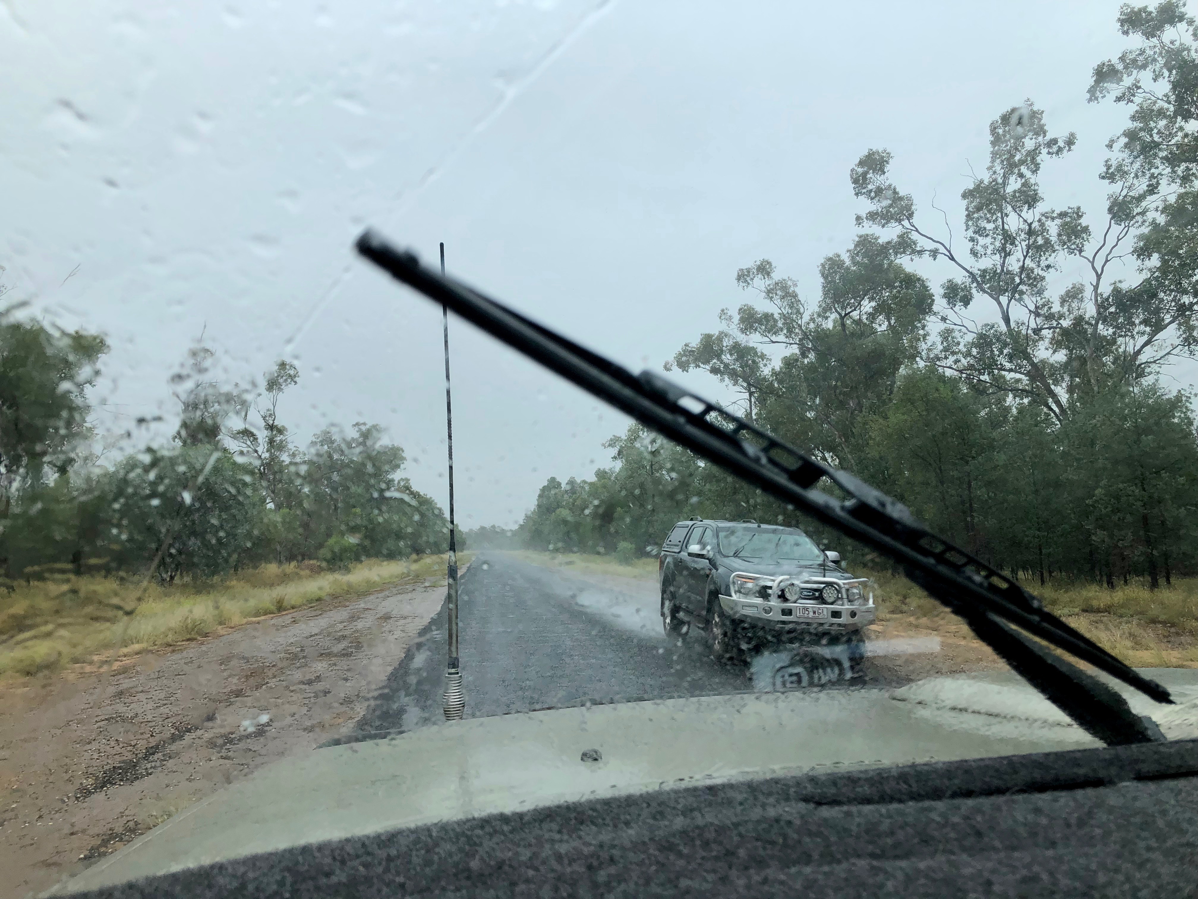 Much of the Darling Downs has been taken over by huge cotton growing operations which store enormous quantities of water in tanks to irrigate the crops. As we drove past fields of cotton ready for harvesting, clouds started rolling in and before long the gentle mist turned into a torrent.