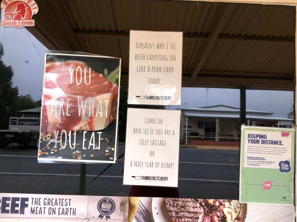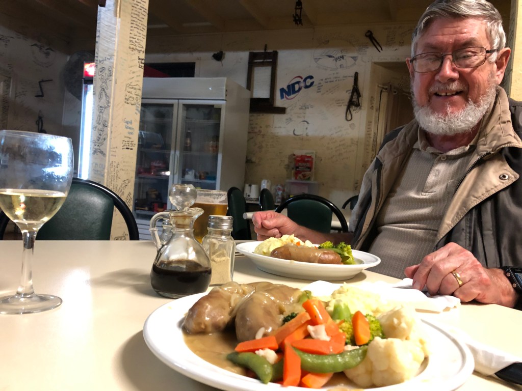 We returned to the bar after setting up camp. Maureen was still there, chatting to a couple whom I think were her son and daughter in law – and in no time we were included in the chat as if we were family. Soon after Bruce, Maureen’s husband walked in, after a long hard day out on the property. He came across as reticent at first, but he soon relaxed and we felt like we were part of the community with them. He cooked us the best bangers and mash dinner we have enjoyed for EVER!. After dining we enjoyed chatting with Maureen and Bruce and hearing their stories.