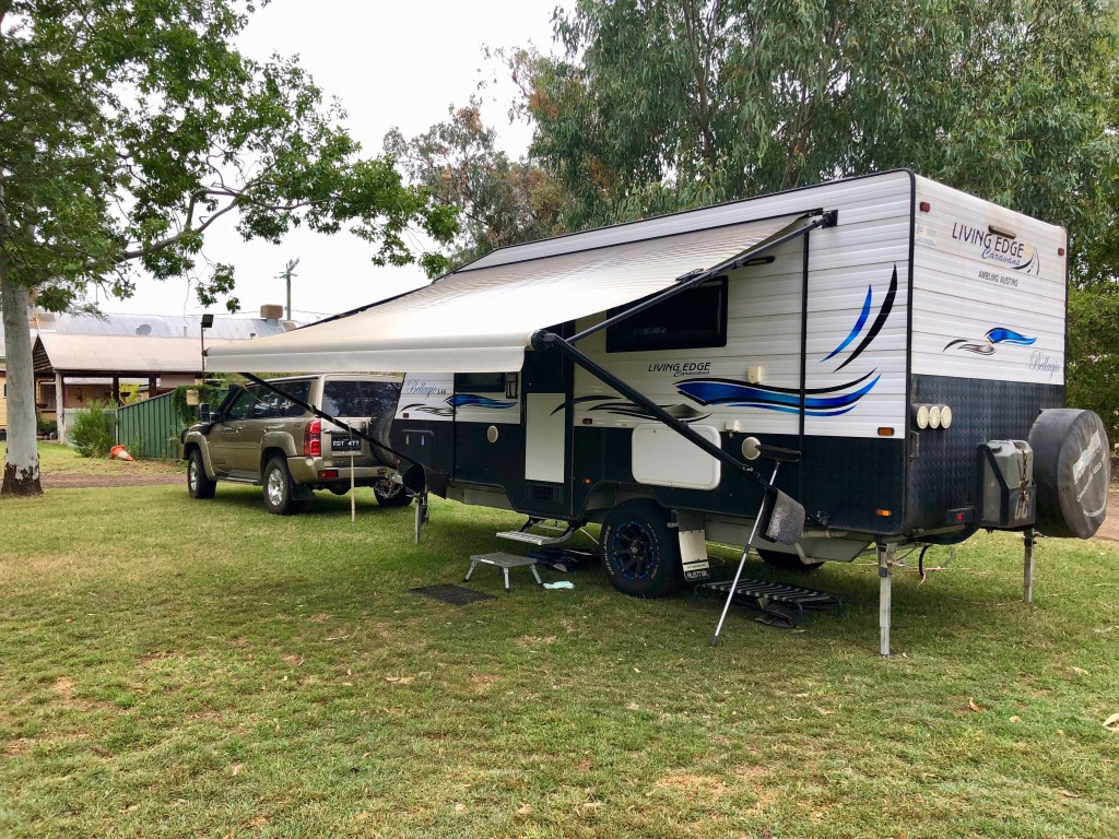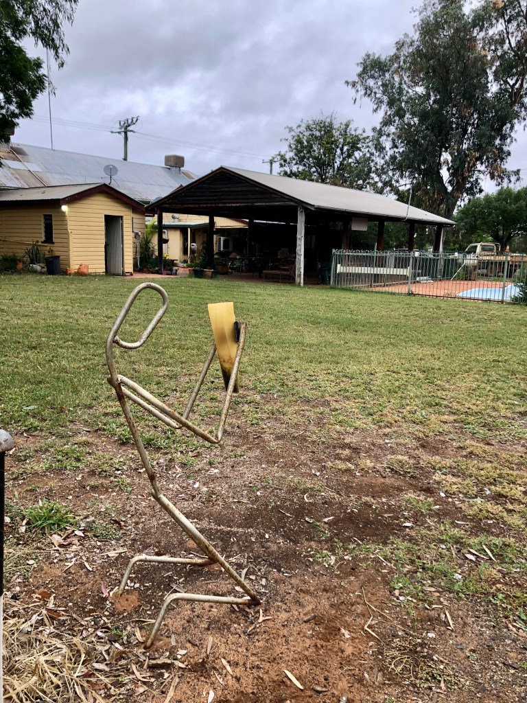 Norm had scheduled our stop for the night behind the quaint Mangallala Hotel. After pulling in to the camp ground behind the pub we popped in to the bar where we were greeted by a lovely lady, whom we later got to know a Maureen. When we asked if she was serving dinner, she replied with a wry smile “My husband is out on the property driving fence posts so I expect he will be doing dinner when he comes in.”
