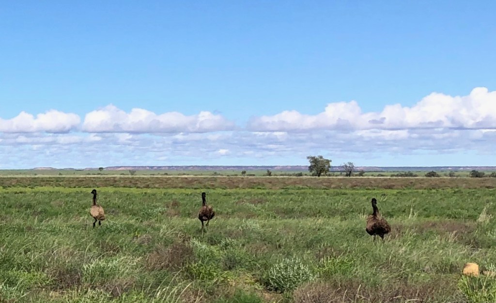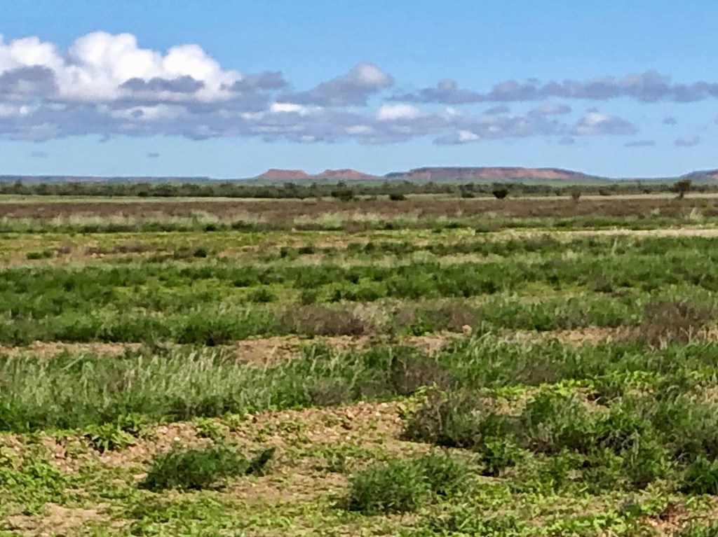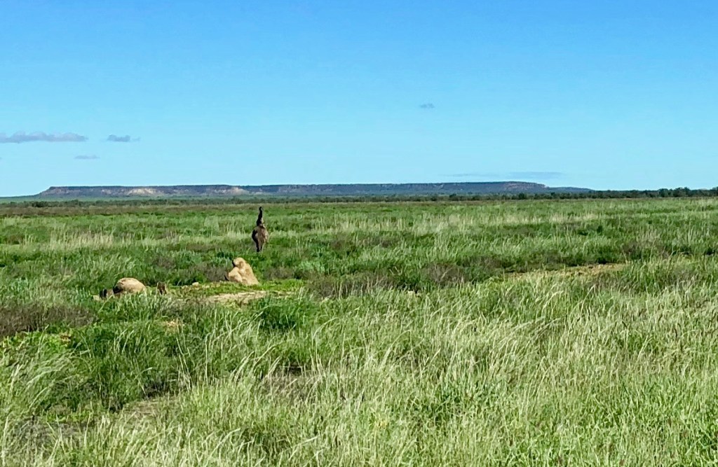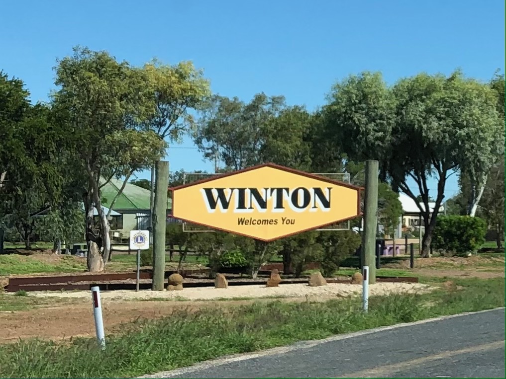 The Landsborough Highway (or Matilda Way as the road signs advised) between Longreach and Winton passed through the most beautiful lush green countryside; such a contrast to any of our previous ambling along this road. The stations have started restocking with a mixture of young calves and more mature Brahmans and other hardy cattle that cope with the conditions up here. The tanks, dams and creeks are all full and the land is still waterlogged in many parts.