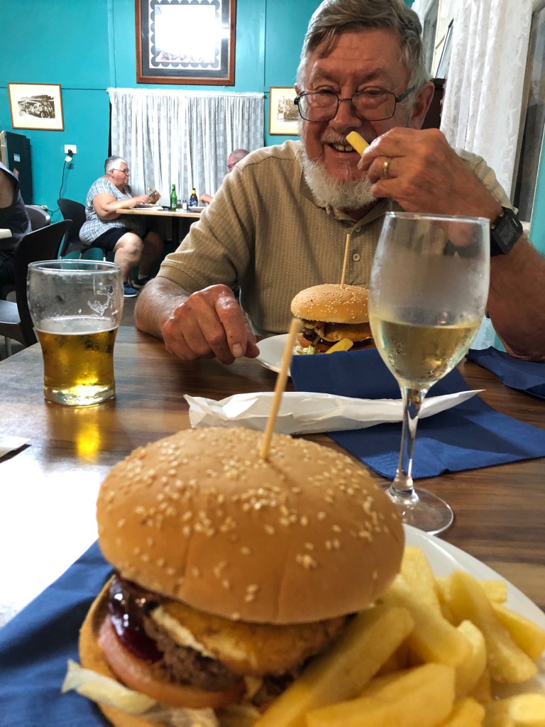 Once we had set up camp, we were able to relax with a book, cooled by the refreshingly cool breeze that wafted through, making what would have been almost an unpleasantly hot experience bearable. Later, In the light of the almost full moon, we ambled across to the pub to test the review of their burgers. YUMMY is the word.