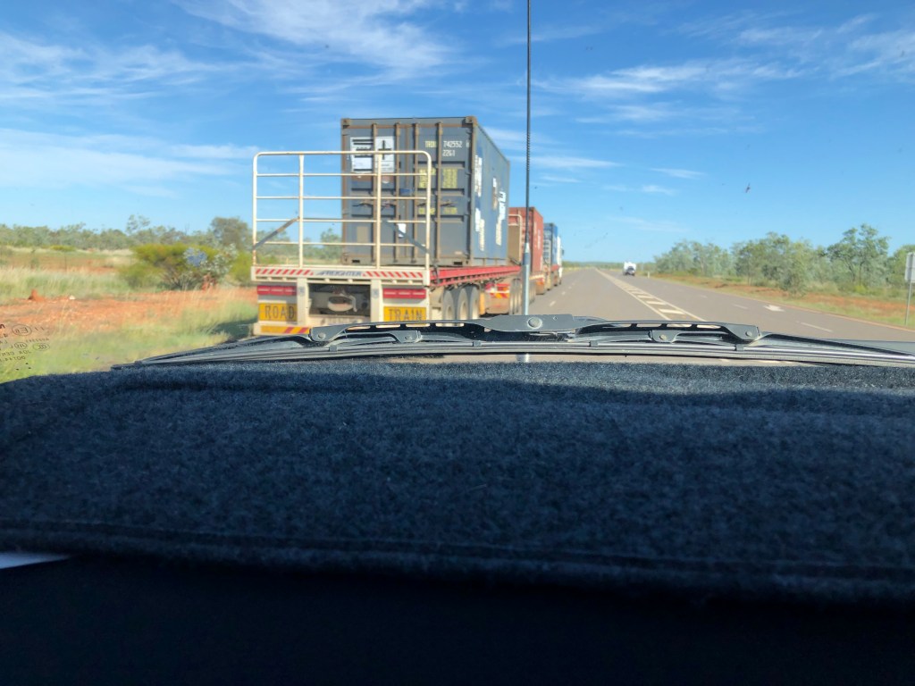 The next morning we left The Isa and continued along the Barkly Highway, following a road train for some time before we could overtake it. The road was rather busy with lots of mining road trains and fellow nomads.