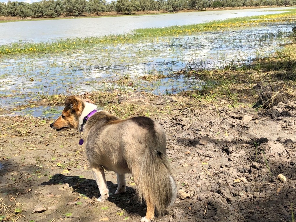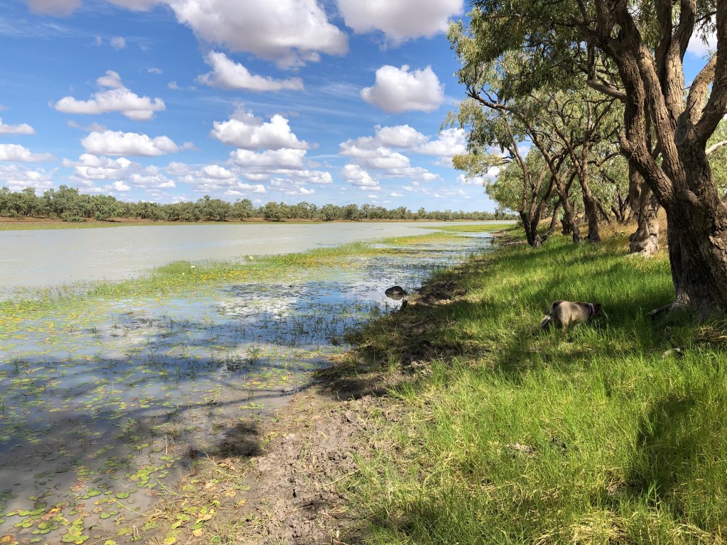 We have been on the road now for two weeks, and here we are camped at one of our favourite places. The brolgas, whistling kites, ducks, egrets, cormorants, mudlarks, galahs, herons, butcher birds, and other feathered locals have made us feel so welcome with their lovely song and funny antics. One Pee Wee fell so much in love with one of Linus’s mirrors, we had to cover up the mirror to distract the lovelorn bird from constantly attacking it.