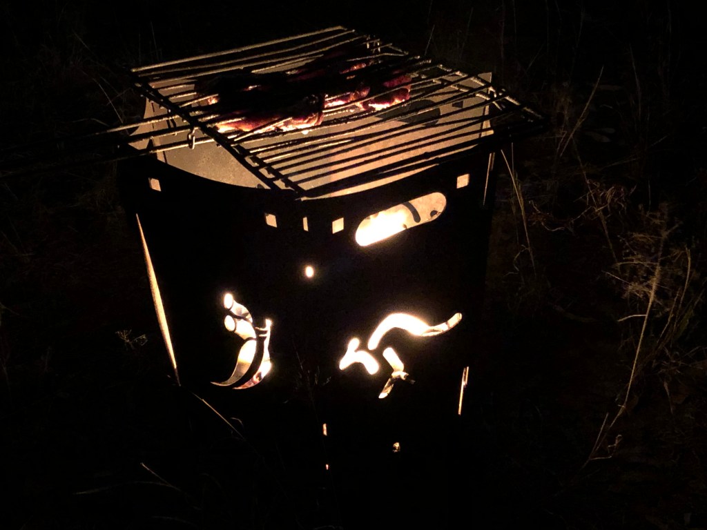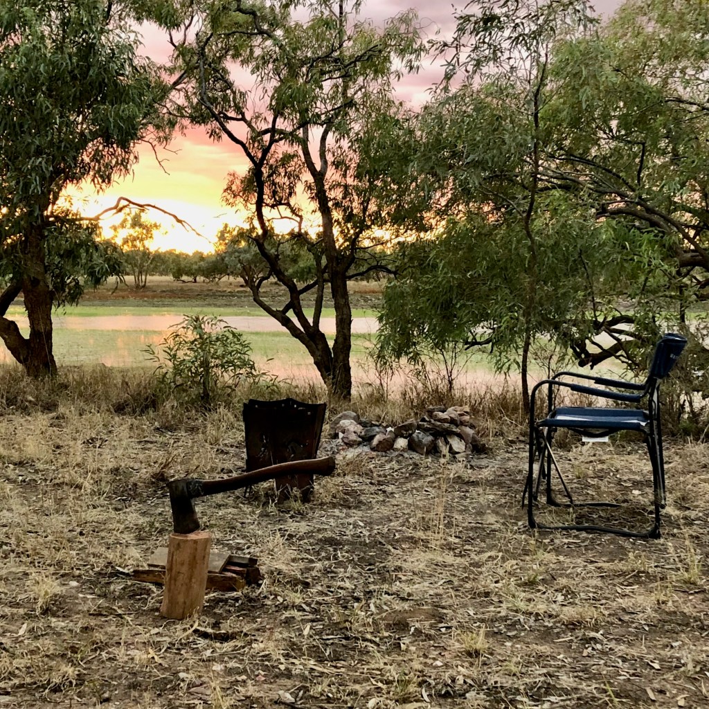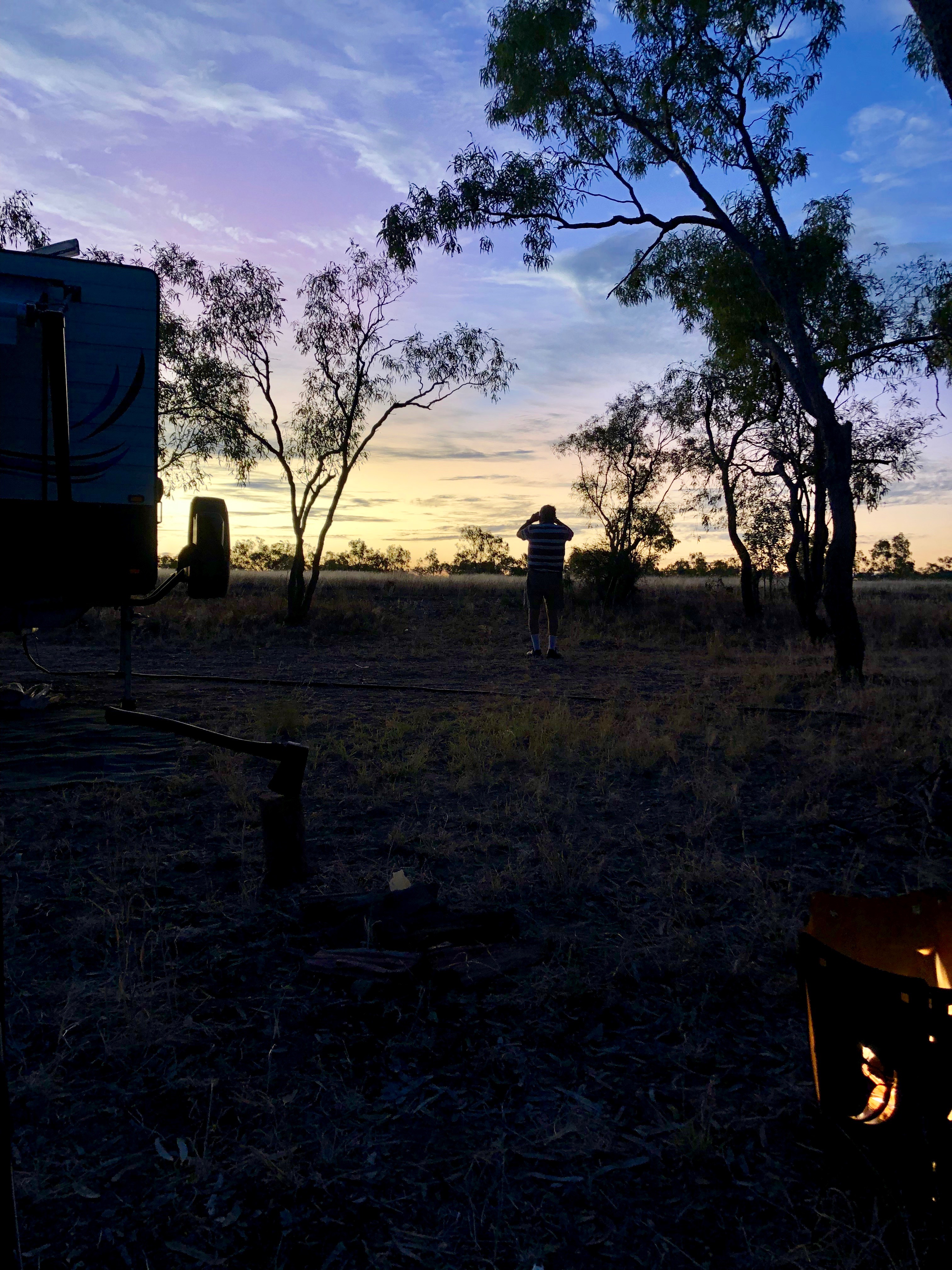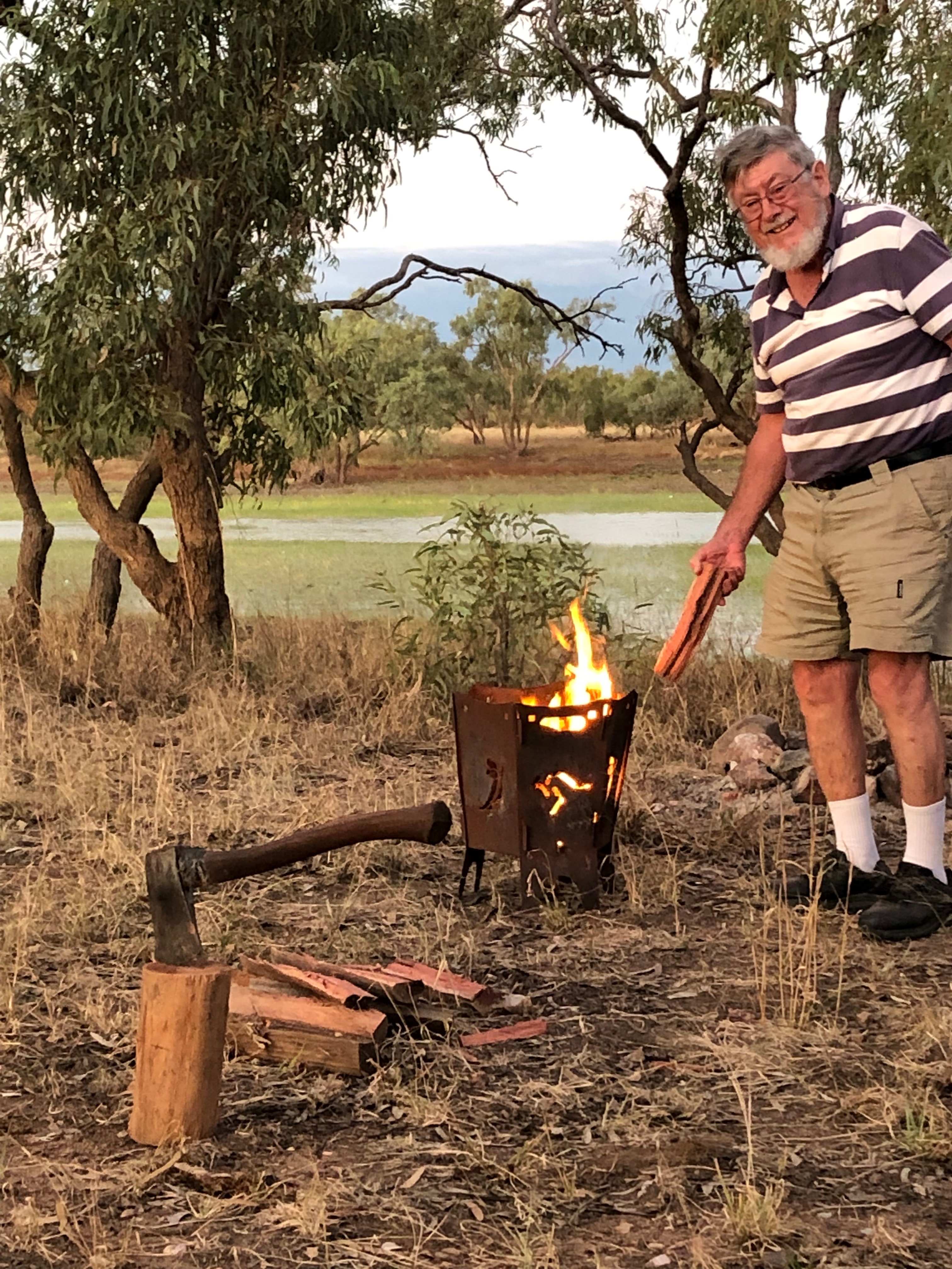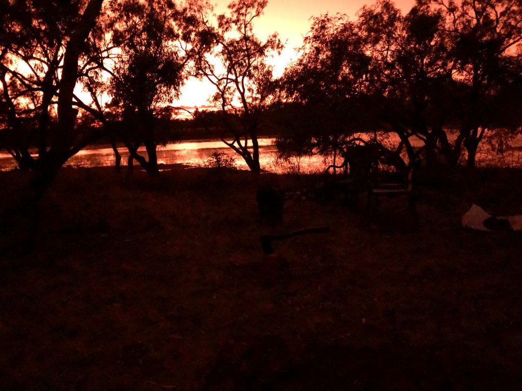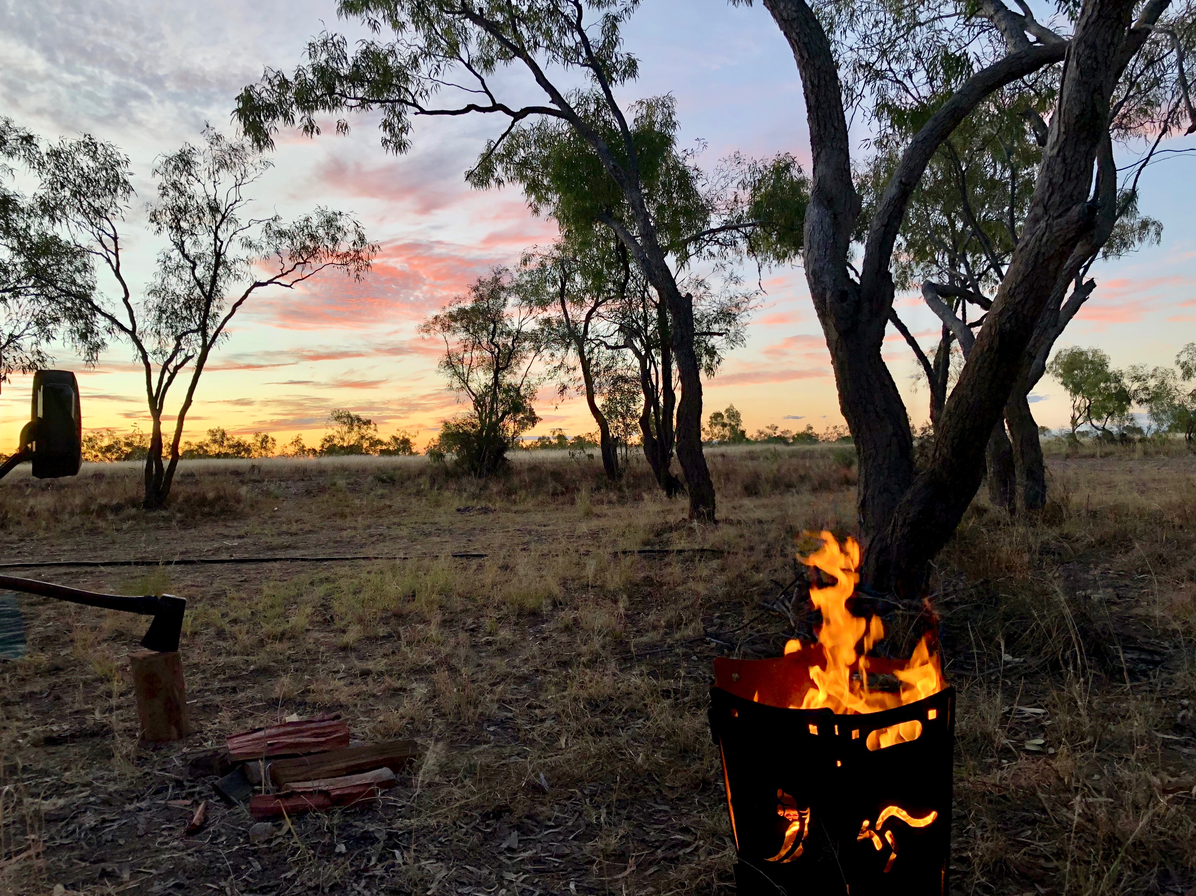 Later, as the sky lit up in all the glorious sunset colours you can imagine, Norm set up the camp fire. We then relaxed with a cool drink (or maybe two) mesmerised by the spectacular colours which lit up the sky as if it was a wonderful canvas being created just for us.
