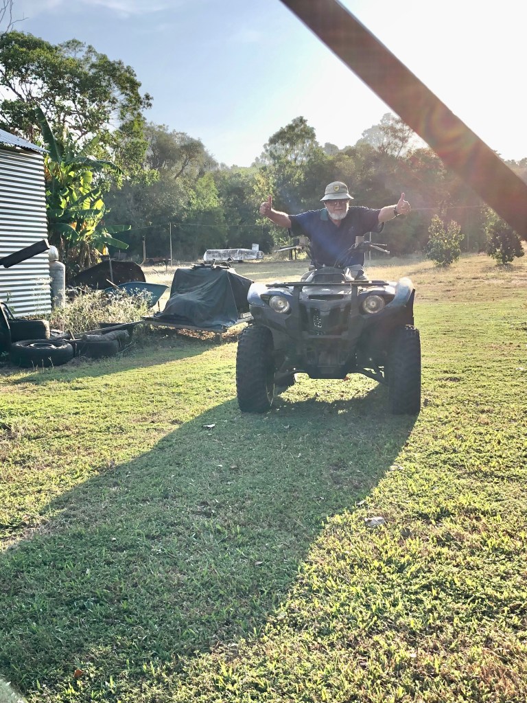 Early on Wednesday morning our happy trouble free time was shattered by the terrible news that one of James’ best mates had passed away during the night. Norm and James had spent time with him the day before at the Men’s Shed. It has come as a most horrible realisation that ‘Bonner’ is gone. I met him last trip at the sausage sizzle stall at the Bachelor Markets. He was such gentle , likeable man, who volunteered his help and support in many local events . Last Australia Day he was honoured as the local Australia Day Citizen of the Year.