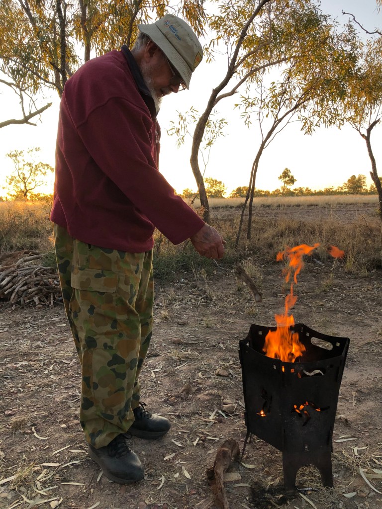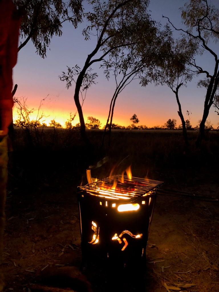 As the sun sank lower in the sky, the grasses in the paddock opposite our camp lit up in most vibrant glowing creams and pinks. Norm lit the camp fire and we drank a toast to the Sun Gods in gratitude for the glorious display of colour that was developing before us.
