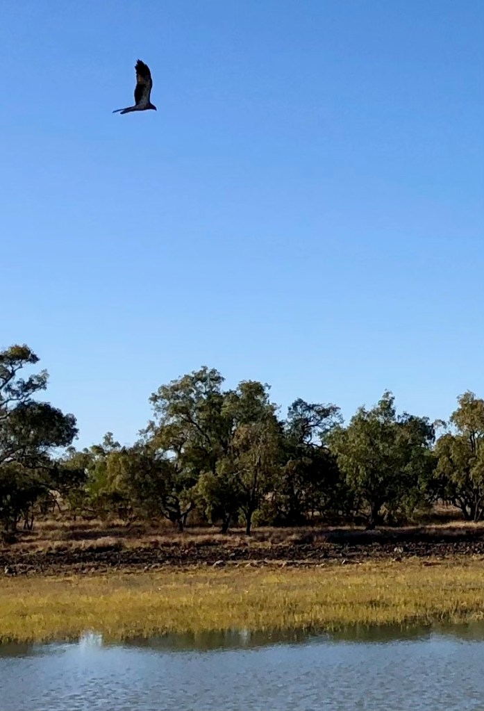 This morning the dogs and I went for a slightly later walk than usual, and caught up with the whistling kites flying their circuits in the swirling winds. I saw one kite dive onto a small duck, which I think managed to disappear underwater with a desperate quack just in time. The brolgas seem to have relocated down to Lake Frances. Perhaps it is more sheltered or the fishing is better.