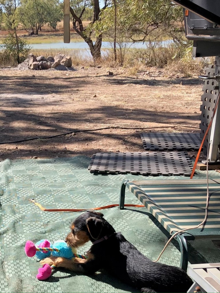 It has been a lovely lazy sunny day out of the wind. Coomalie is teething on her toy duck whilst Rosie is sunning herself and Norm is now preparing to pack up ready to get back on the road tomorrow. Mary Kathleen will probably be our next camp.