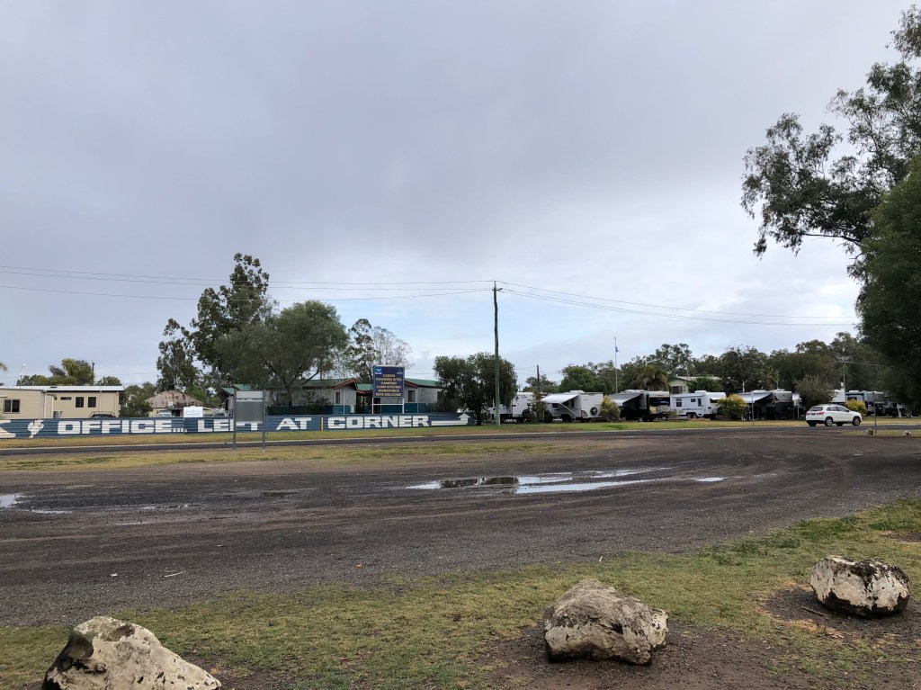 Soon after we returned to the Caravan, the forecast rain did return and has been falling steadily ever since. We are hoping that it will clear away by tomorrow, as we are hoping to spend a night at Queensland’s oldest pub, the Nindigully on the banks of the Moonie River. Last time we camped there a storm blew up in the afternoon. Whilst we enjoyed the evening in the bar, the camp ground had turned to thick slippery mud, which made driving out the next day an experience to remember.