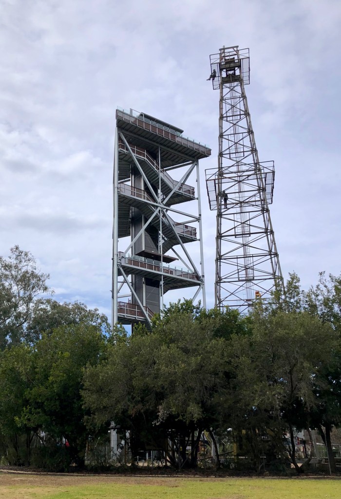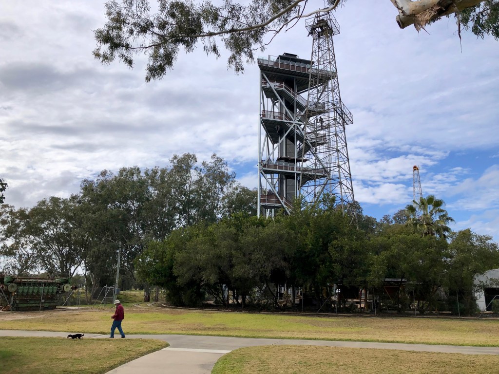 Given that more rain was on offer today, we grabbed the opportunity to get out and explore before the wet weather returned. Opposite our Van park is the ‘Big Rig’ exhibit, which tells of the experiences of the early oil and gas pioneers. They have an evening sound and light show, which could well be worth a visit, however I don’t imagine it would be much fun in the rain.