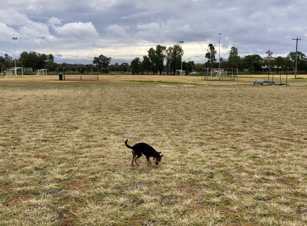 Coomalie was in the mood for a big run, so we took her to the sports ground next to the big Rig, where she was able to tear around and around in circles like a little black grey hound. She has SO much energy and can move like the wind. Rosie just stands still and lets the ‘baby’ run rings around her.