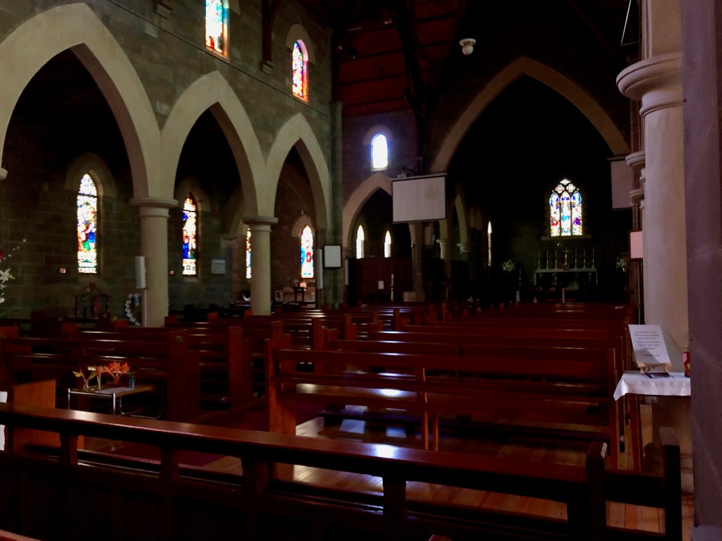 Before heading back to camp we paused to admire the stunning leadlight and stained glass windows of St Paul’s Anglican Church. It is very dark inside the church and without the light of the sun to brighten up the windows, it was difficult to capture their true magnificence.