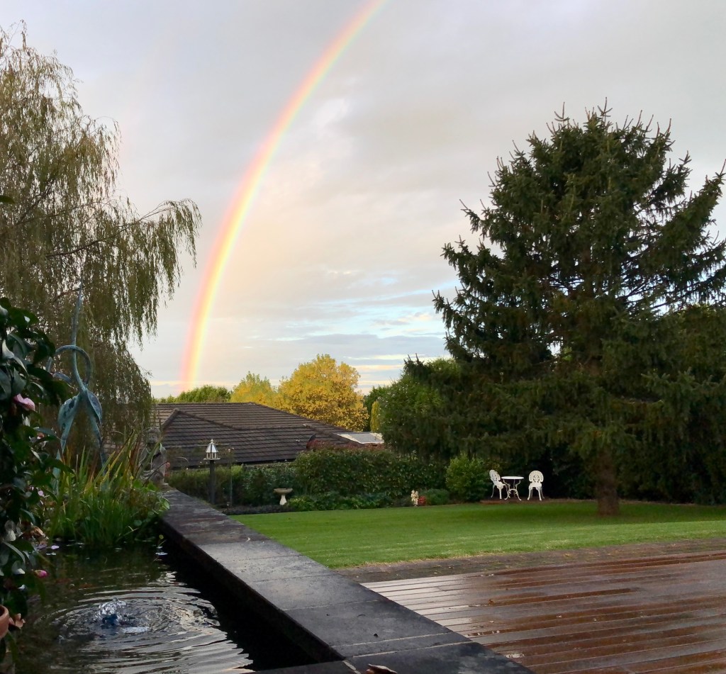 Just as I am writing this, there is the most amazingly eyecatching rainbow arching over the sky. Luckily I managed to finish mowing the lawns just before this latest shower arrived.